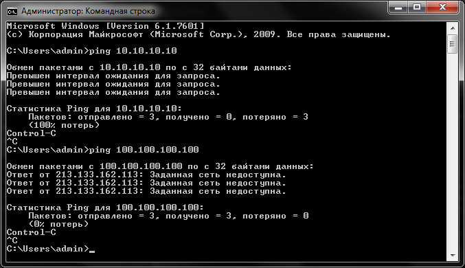 а потом, по очереди запускаем пинг до этих самых адресов. Если вдруг мы увидим что-то подобное: