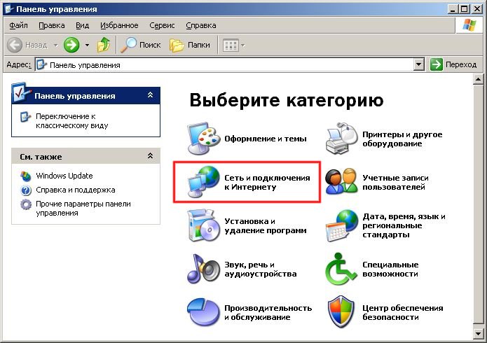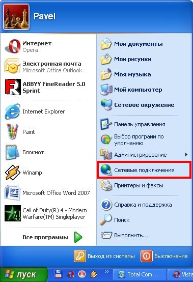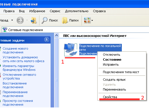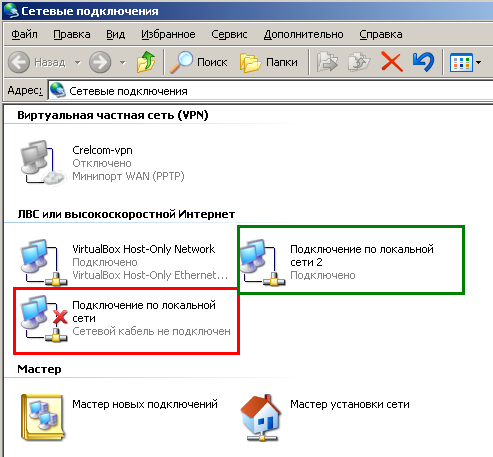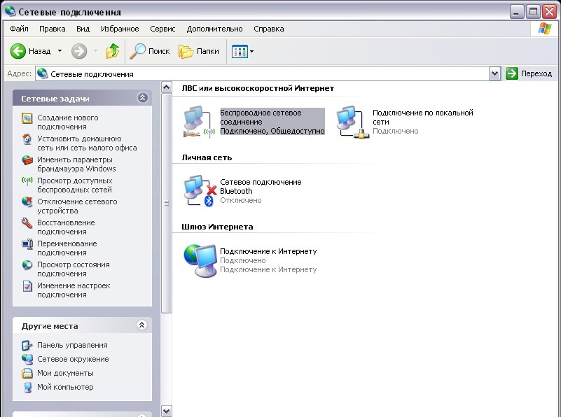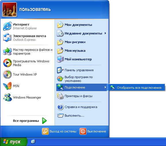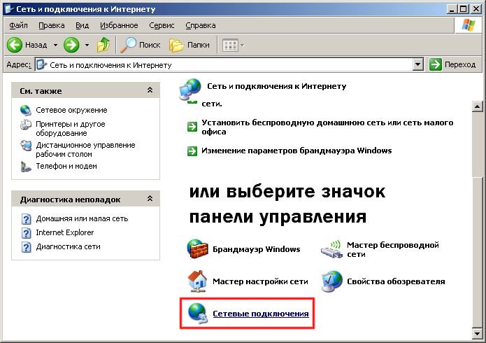Значок сетевых подключений в Windows XP: