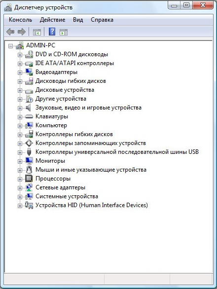 Интерфейс окна "Диспетчер устройств" в разных версиях ОС Windows особо не различается и выглядит примерно так: