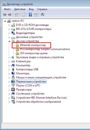 Если вы видите что-то подобное в своем "Диспетчере устройств" - вам нужно найти драйвера для своей сетевой карты и установить их. После этого, если ваш провайдер использует автоматическую конфигурацию IP адресов(DHCP), ваш сетевой адаптер должен будет получить адрес, DNS и шлюз и благополучно выпустить вас в Интернет. В любом случае - наличие в "Диспетчере устройств" желтых значков с восклицательными знаками есть нехорошо и значит, что какие-то из имеющихся в вашем системном блоке/ноутбуке устройств попросту не работают. Или работают, как минимум, некорректно.