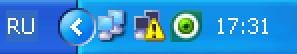 В области трея обычно располагаются системные значки и значки некоторых работающих приложений, активное окно или пользователский интерфейс которых сейчас скрыты за ненадобностью и дабы не загромождать панель задач. В Windows XP, Vista, Seven трей может отображать не все значки и скрывать некоторые из них. В Windows Vista/Seven можно управлять тем, какие значки будут отображаться в трее, а какие - прятаться. За отображение скрытых значков трея отвечает пресловутая "стрелочка", располагающаяся как самый первый значок трея. Обычно она находится справа от значка текущего выбранного языка системы. Сразу за ним. Хотя этот значок не обязательно может находится непосредственно перед треем, но чаще всего он находится именно там. Если кликнуть по нему левой кнопкой мыши можно увидеть небольшое меню смены языка и, собственно, сменить язык ввода при необходимости. Так же язык ввода можно сменить нажатием сочетаний клавиш на клавиатуре. Обычно это Ctrl + Shift или Alt + Shift.