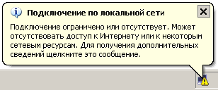 Такой вид значка обычно сопровождается всплавающей подсказкой с надписью "Подключение ограничено или осутствует" для Windows XP либо же "Без доступа к сети" для Windows Vista/7/8/8.1. Говорит такой значок о некоректных настройках сетевого подключения. То есть в подаваляющем боьшинстве случаев - это програмная проблема, которая решается корректированием сетевых настроек. Тем не менее, бывают случаи, когда такая ошибка появляется из-за неисправности сетевой карты.