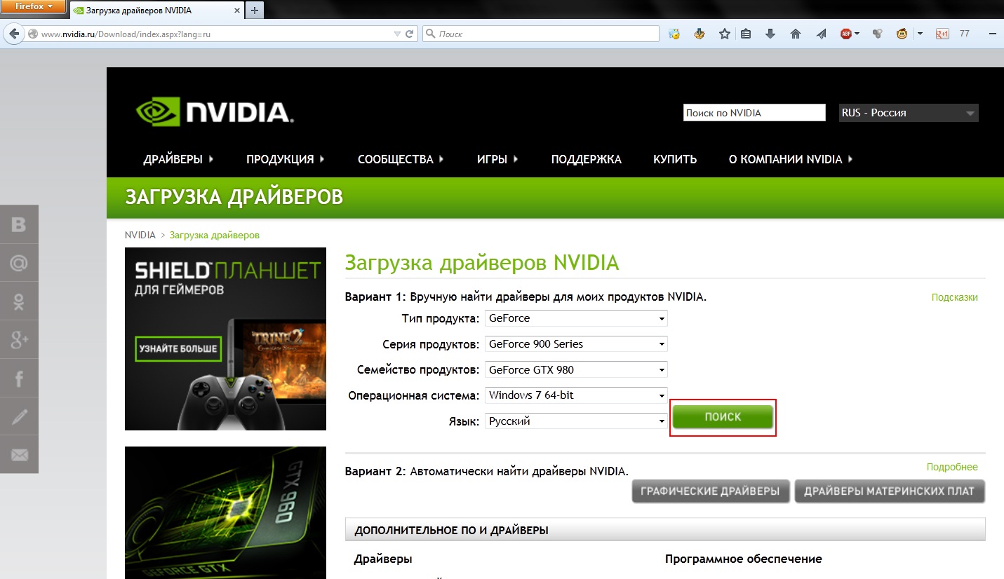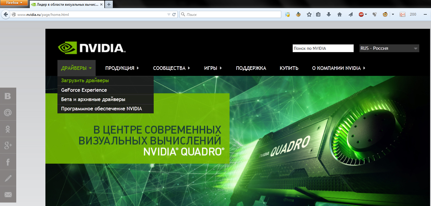 Итак, заходим на сайт, выбираем в меню "Драйверы" -> "Загрузить драйверы"