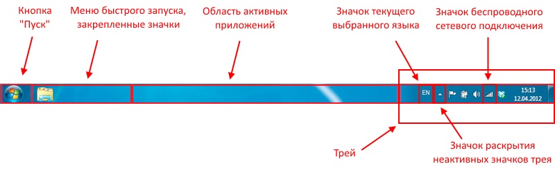 Вот как выглядит типичная панель задач Windows 7: