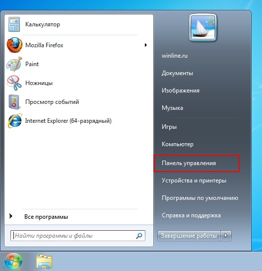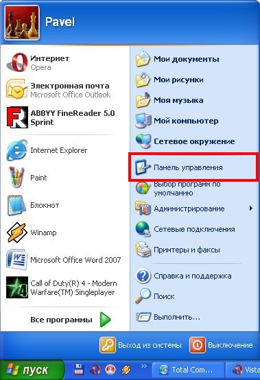 всегда располагается в правой колонке меню "Пуск", практически в самой нижней части). Иногда бывает, что такого пункта