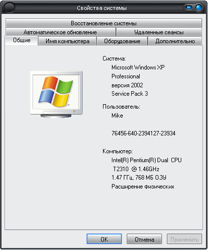Окно "Свойства системы" в Windows XP